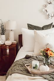 One of our favorite ways to transition décor from summer to fall is to switch out or add cozy textiles, such as accent pillows, throws, guest towels, and even window treatments. Choose warm colors and rich textures like knits, wools, and flannel. On your bed, simply changing the sheets to something heavier and adding a blanket over the foot of the bed will completely change the feel.