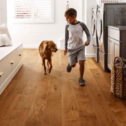 ~~Site-finished hardwoods are installed raw (unfinished) and then sanded, stained, and coated with polyurethane in your home. You are able to select the stain color and the gloss level of the floor. Prefinished hardwood floors are fully manufactured and finished in the factory. A prefinished floor offers a quicker and more convenient installation, but you have fewer choices in stain color, etc. Both types of wood flooring (site-finished and prefinished) are available in solid and engineered wood.