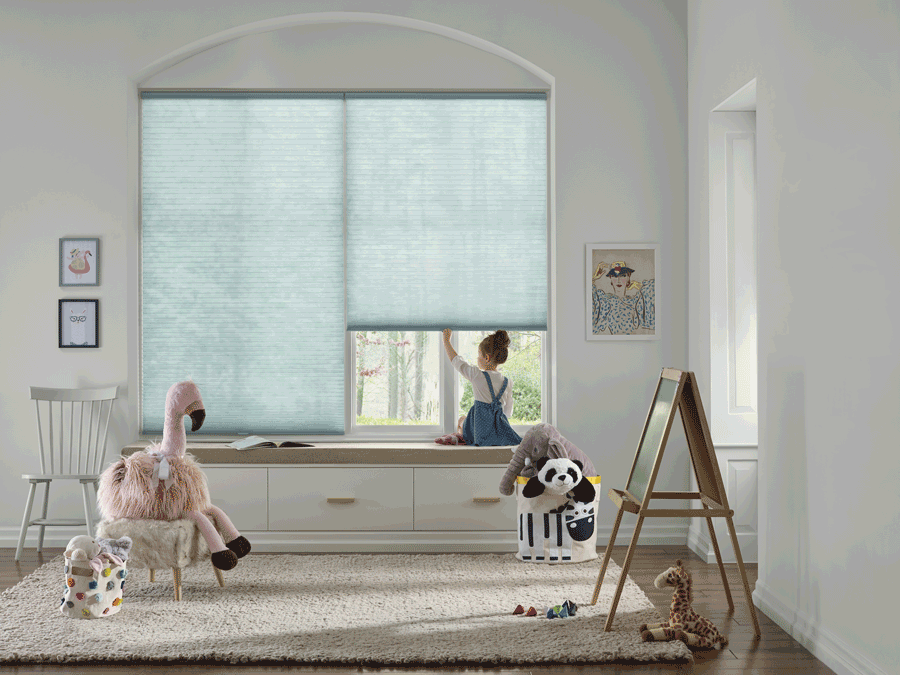 ~~Child safety is very important, and Hunter Douglas offers a variety of options. From cordless and motorized operating systems, retractable lift cords, cord tensioners and wand controls, we offer a wide array of lifting system options for enhanced child and pet safety.