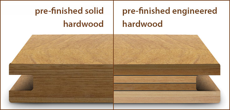 ~~Site-finished hardwoods are installed raw (unfinished) and then sanded, stained, and coated with polyurethane in your home. You are able to select the stain color and the gloss level of the floor. Prefinished hardwood floors are fully manufactured and finished in the factory. A prefinished floor offers a quicker and more convenient installation, but you have fewer choices in stain color, etc. Both types of wood flooring (site-finished and prefinished) are available in solid and engineered wood.