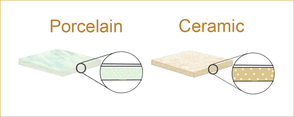 ~~Porcelain tile is similar to ceramic but is much stronger and harder. Porcelain has a fine sand base (as opposed to a clay base) and is fired at higher temperatures than ceramic. Some porcelains are glazed (the color is only in the glaze coat) while some are through-body, meaning the surface color goes all the way through the body of the tile. A through-body porcelain will not show chips and scratches as easily.